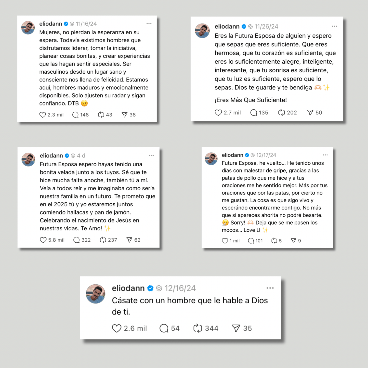 💬 "Cada vez que leo una carta tuya, siento que estoy más cerca de la mujer que quiero ser. Elio, gracias por inspirarnos a ser personas de alto valor y a esperar con paciencia y fe. Gracias Chamito"
